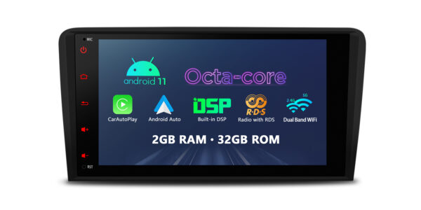 Android 11 Octa Core 2GB DDR4 RAM + 32GB ROM 8” Car Stereo Multimedia Player GPS Navigation System with Dual UI Automotive-grade Hardware Built-in CarAutoPlay & Android Auto & DSP Radio with RDS Coaxial Audio Output Custom Fit for Audi A3/S3/RS3