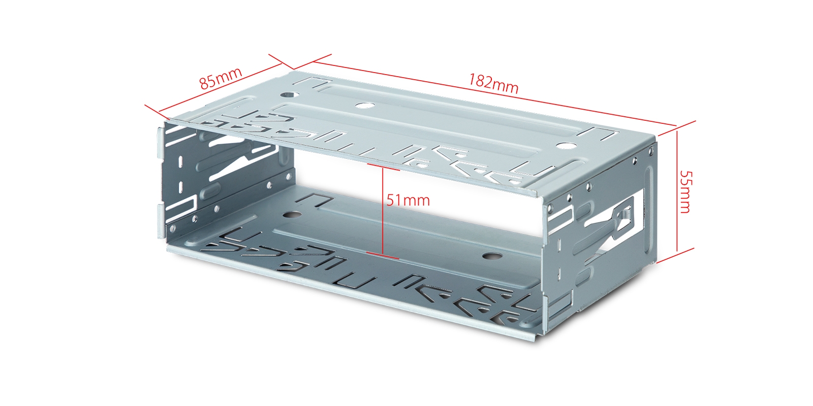 This fitting cage fits most single DIN aftermarket headunits. It is designed to securely hold the stereo in the slot. Installation:  Mount the cage from the back of the unit, and clip it to the bracket. Size:  85*182*55mm Package:  1 x Single DIN Fitting Cage