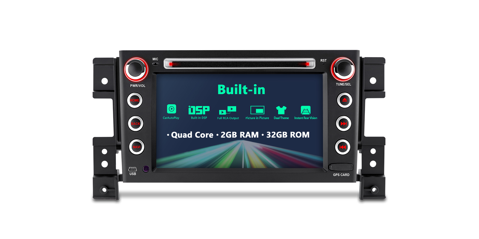 Android 12 Quad Core 2GB RAM + 32GB ROM Multimedia Car DVD with 7″ Display Built-in CarPlay Built-in DSP Custom Fit for Suzuki Grand Vitara 2005-2013